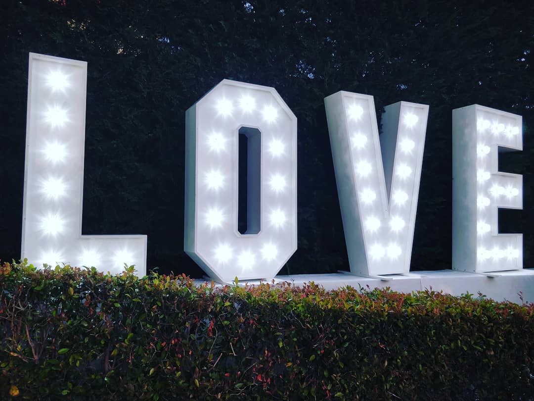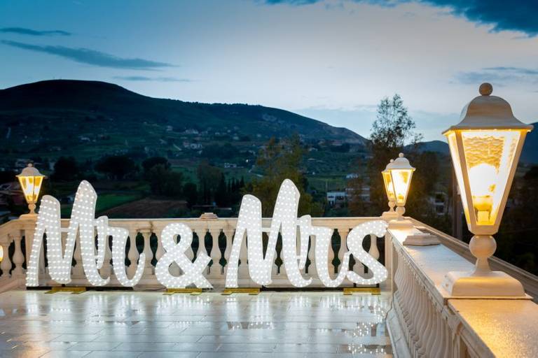 In partnership con un'azienda specializzata in Wedding Lights, offriamo la possibilità di realizzare progetti completi di light design, oppure di noleggiare singole strutture luminose per arricchire la scenografia del tuo matrimonio (iniziali degli sposi, cuore, scritta "Love", scritta "Mr and Mrs",..)