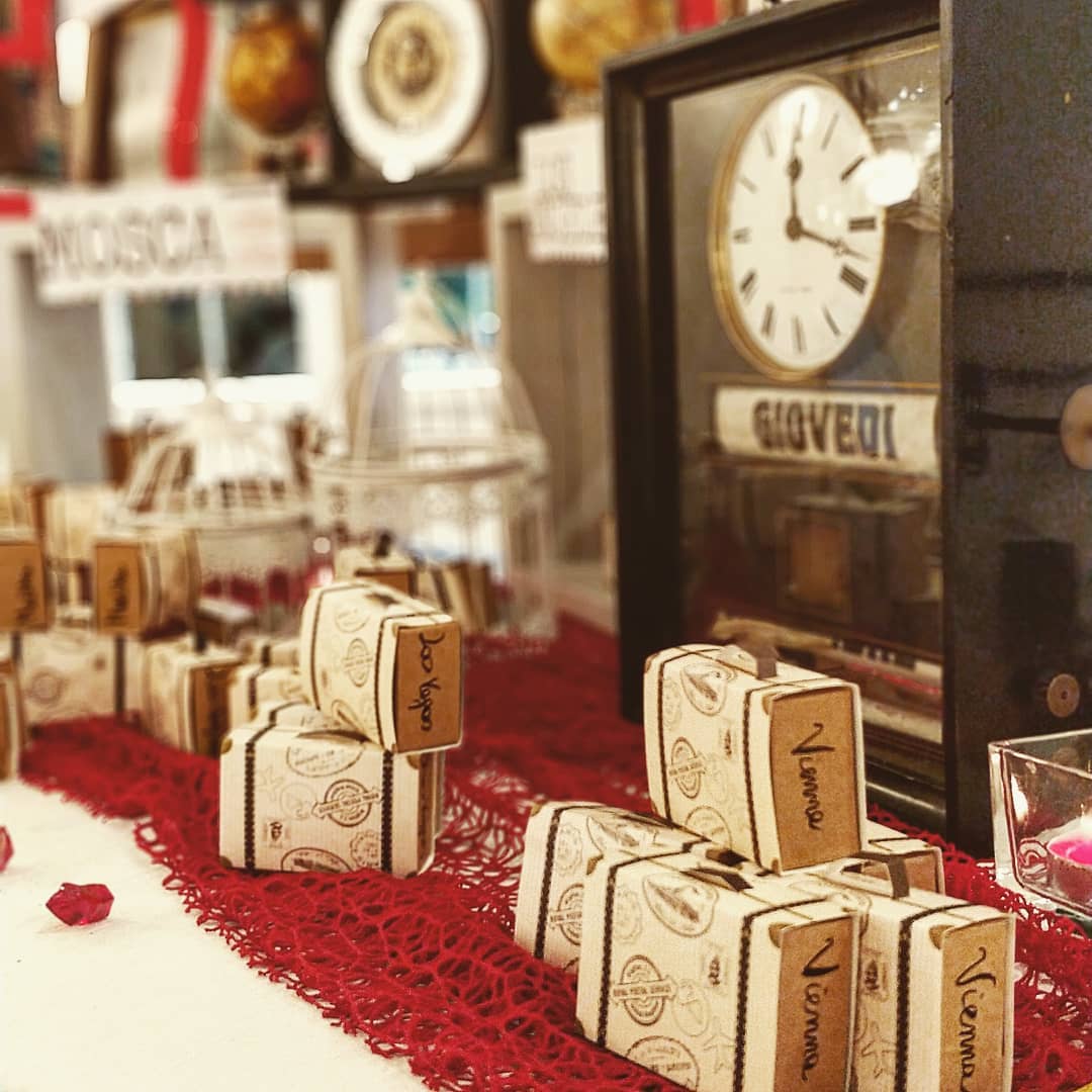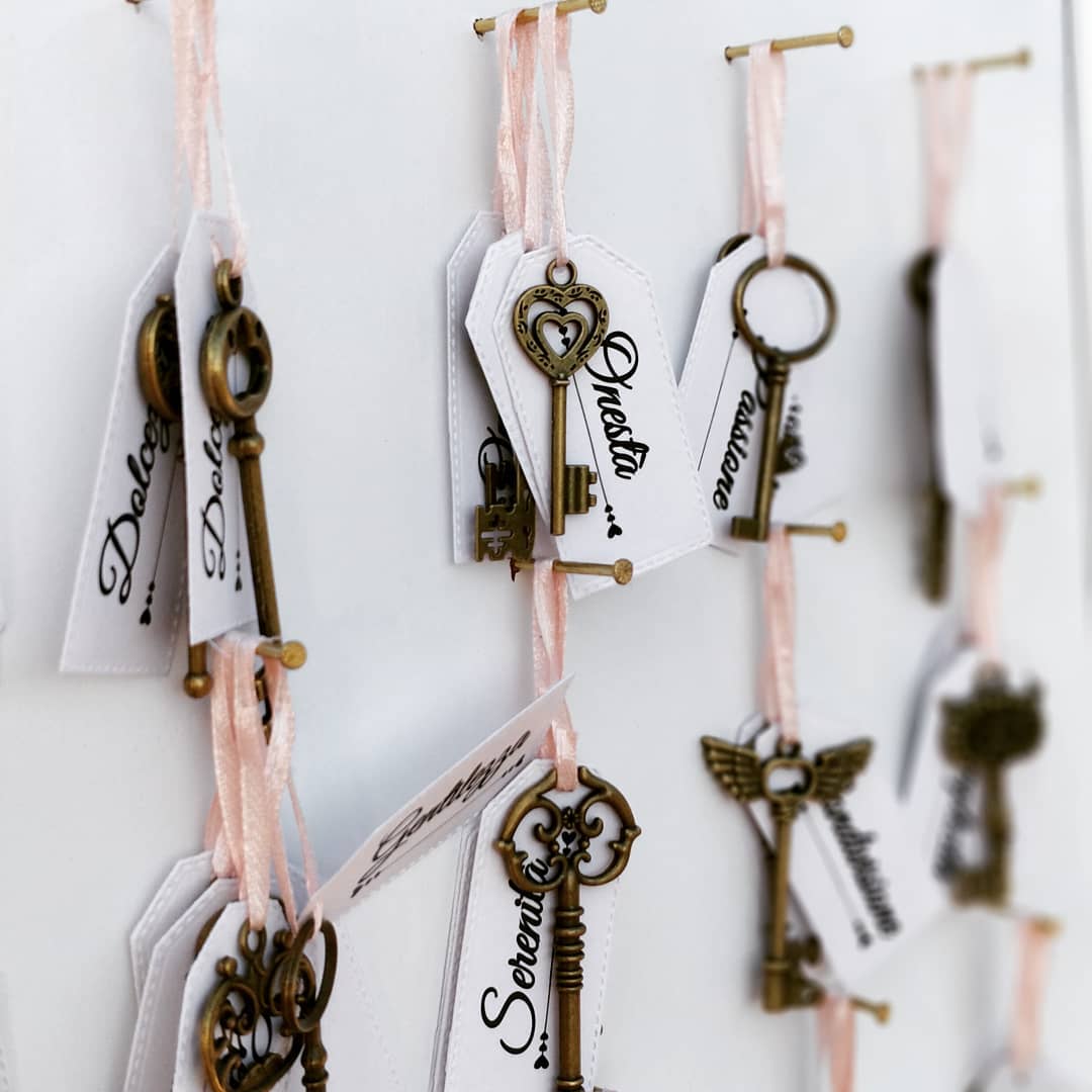 E’ inoltre possibile associare al tableau delle escort cards o dei simpatici gadjet a tema, che riportano i nomi dei tavoli, da consegnare agli ospiti prima di prendere posto in sala.